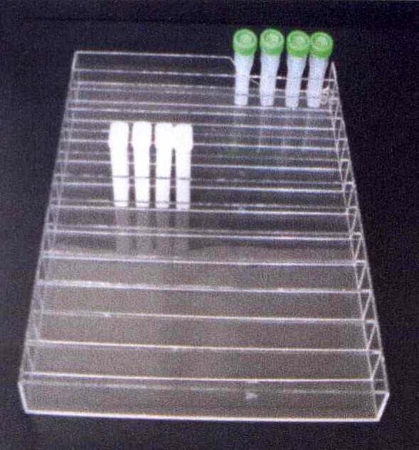 Immuno Vial Organizer Rack large refrigerator rack includes 12 channels to neatly store up to 169 immuno vials. Made from durable PETG material to withstand cold air. 16 in (W) x 16 in (D) x 8.5 in (H).