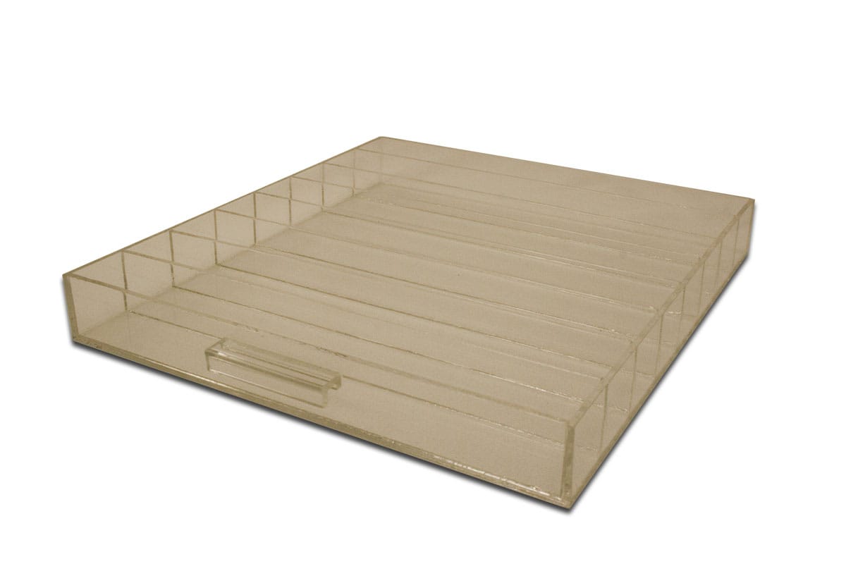 The Medium Immuno Vial Rack has 8 channels, 1 1/16″ wide each. Rack is made from durable PETG material to withstand cold air. 8.5 in (W) x 9.5 in (D) x 1.25 in (H).