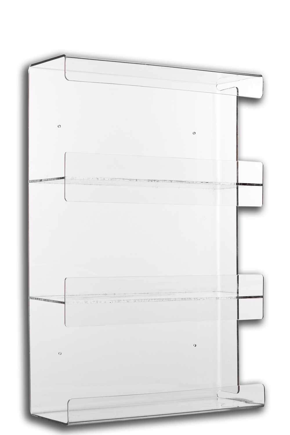 Made from durable PETG and designed to hang vertically or horizontally on the wall to maximize counter space. Dividers store boxes independently of each other for easy replacement. Holds all brands of gloves.