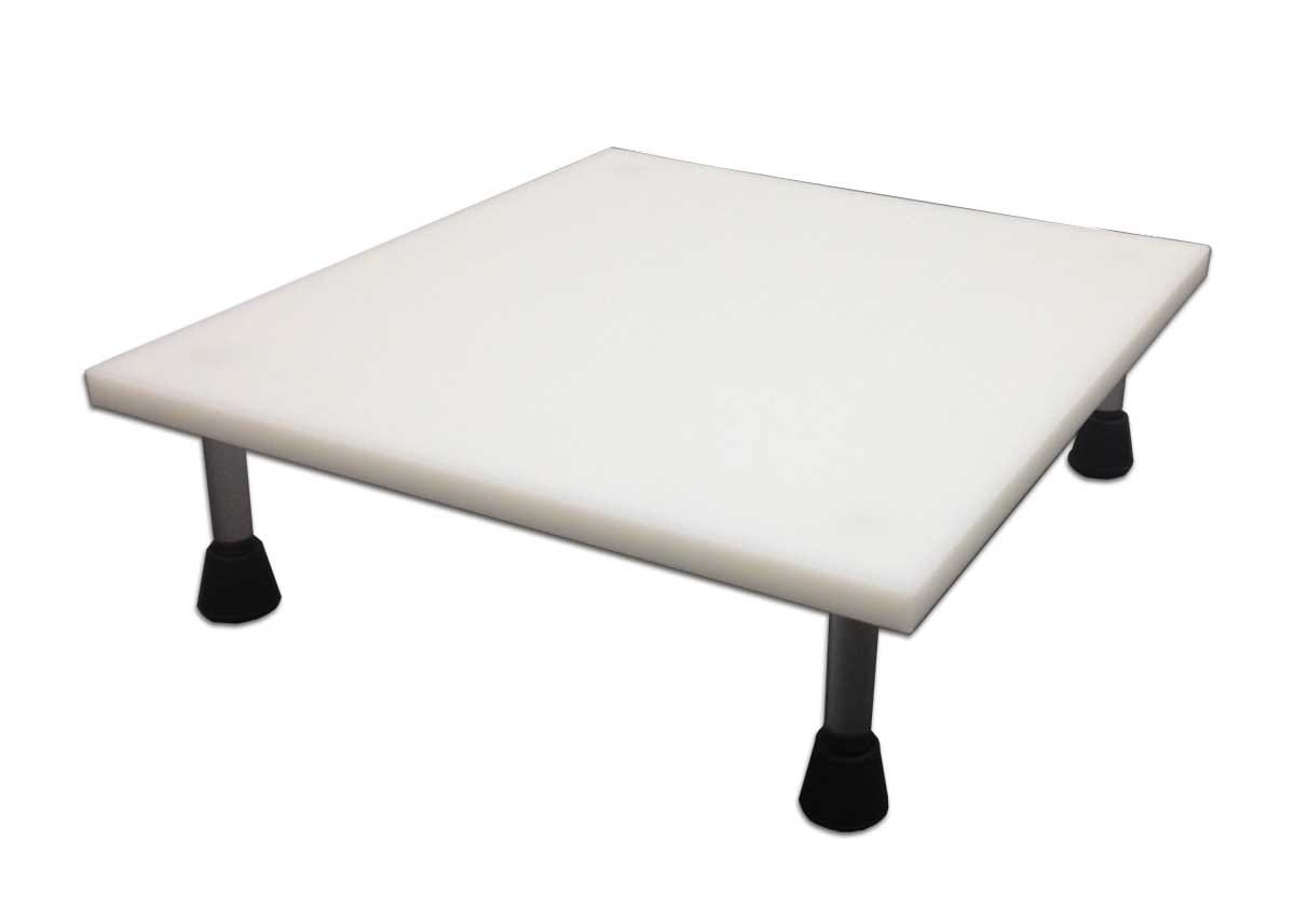 Made of non-porous polythylene 1/2″ material. Legs are firmly attached at bottom of cutting board, raising the overall height to 3.5″. Rubber caps prevent slipping. Also available in large. 11″ (w) x 12″ (d) x 3.5″ (h).